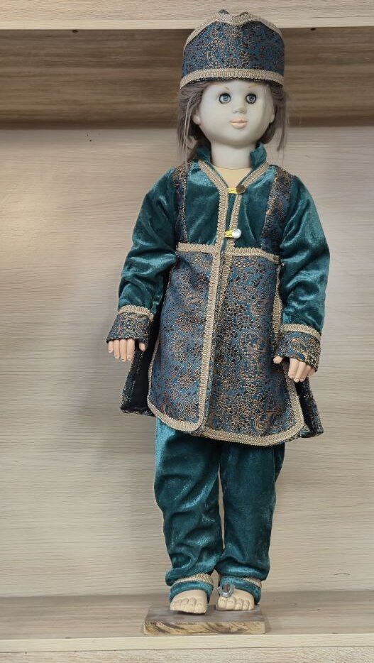این لباس سنتی پسرانه با طراحی چشمنواز و رنگی خاص، یادآور پوشاک اصیل ایرانی است که ترکیبی از شکوه، وقار و هنر دستی را در خود دارد.