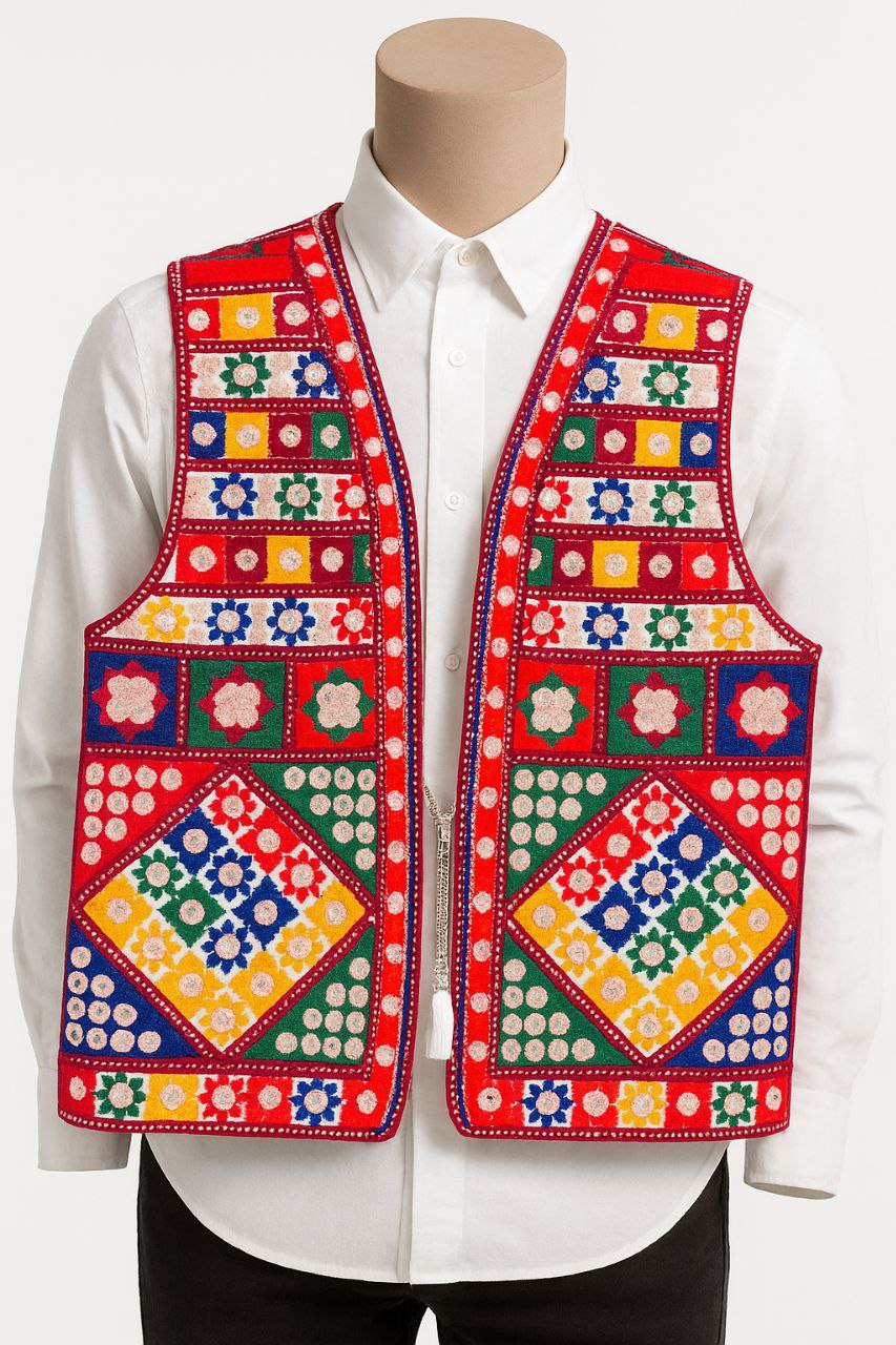 این جلیقه بهزیبایی با پیراهن سفید ترکیب میشود و برای مراسم سنتی، جشنها و آیینهای فرهنگی انتخابی ایدهآل است.